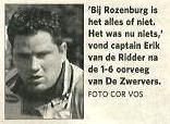 ,,Nee, ik wil niet op de man gaan spelen, laten we het er maar op houden dat we als collectief hebben gefaald," spark Hecker gedesillusioneerd na de oorwassing. ,,Deze wedstrijd was zonde van de tijd en daarbij schaam ik me diep ten opzichte van de mensen die zijn meegegaan en het jubileum in Rozenburg hebben gelaten voor wat het is. In de tweede wedstrijd tegen Spirit stond er een team, vandaag totaal niet.De selectie is niet breed, maar voor deze ene héél belangrijke wedstrijd hadden de spelers zich nog maar één keer helemaal hoeven te laden. Daarin hebben de meeste spelers gefaald." De missie om via de nacompetitie alsnog degradatie af te wenden, strandde dus in RIdderkerk. Na eerder Spirit nog te hebben verslagen iep de finale van de nacompetitie door een hattrick van Tim Kurvers en de doelpunten van Mark Hoks, Rogier Bal en Edgar van Rijn op een deceptie uit voor de tweedeklasser. Tijdens de rust (1-5!) zag je blikken van ongeloof in de ogen van de Rozenburgse bestuursleden. ,,Wat moet ik hier nu van zeggen?," zei Richard Venekamp. ,,het is te hopen dat het niet erger wordt... Maar die speler (Alex Bekker, red.) had rood moeten hebben, toen hij die strafschop veroorzaakte. Door de strafschop van Erik (van de Ridder,red.) kwamen we op een 1-2 en had het tegen tien man misschien hel anders kunnen lopen. Dit is een zwarte bladzijde in de gschiedenis van Rozenburg. En dan te weten dat we vanavond het jubileumfeest vieren." De ogen van captain Erik van de Ridder waren met vocht doorlopen. ,,De tweede helft leek wel een eeuwigheid te duren. We hebben donderdag keihard getraind en de koppies na Spirit stonden heel goed. Maar bij Rozenburg is het alles of niets. Dat is typerend voor het hele seizoen. Het was nu niets. Ieder moet zelf maar eens in de spiegelm kijken en bij zichzelf te rade gaan. Te veel mensen gaven niet thuis en dat vind ik een kwalijke zaak. Het is ongelooflijk hoe makkelijk wij de doelpunten hebben weggegeven. Ik ben 36jaar en twijfel nu of ik er volgend seizoen nog wel een jaartje aan moet vastplakken