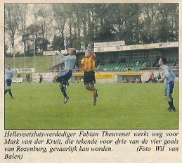 zijn honderste duel voor de Rozenburgse hoofdmacht speelde, langs de lijn optrok en Mark van der Kruit vrij voor de Hellevoetse sluitpost Marcel Smith zette. De koele spits miste niet: 1-0.