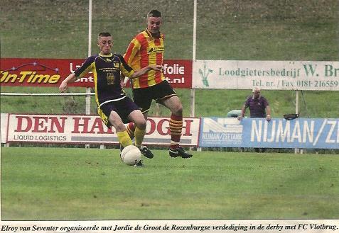 Elroy van Seventer organiseerde met Jordie de Groot de Rozenburgse verdediging in de derby met FC Vlotburg