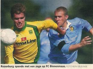 Rozenburg maakte eenbijzonder volwassen en sterke indruk. In deze vorm is de derdeklasser een belangrijke gegadigde om te promoveren. Het door de ex-Feyenoorder geintroduceerder concept met twee spitsen en daarachter twee opkomende middenvelders, wierp zijn vruchten af. Binnenmaas kreeg geen grip op spits Ranvin Noor, die al snel de wedstrijd openbrak.